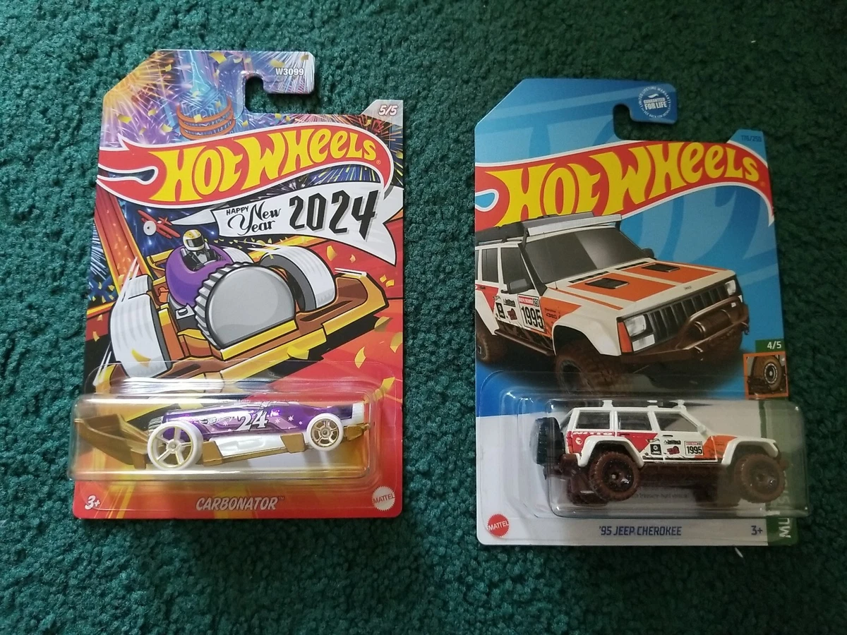 Hotwheels 2023 Treasure Hunt 95 Jeep Cherokee & 2024 Happy New